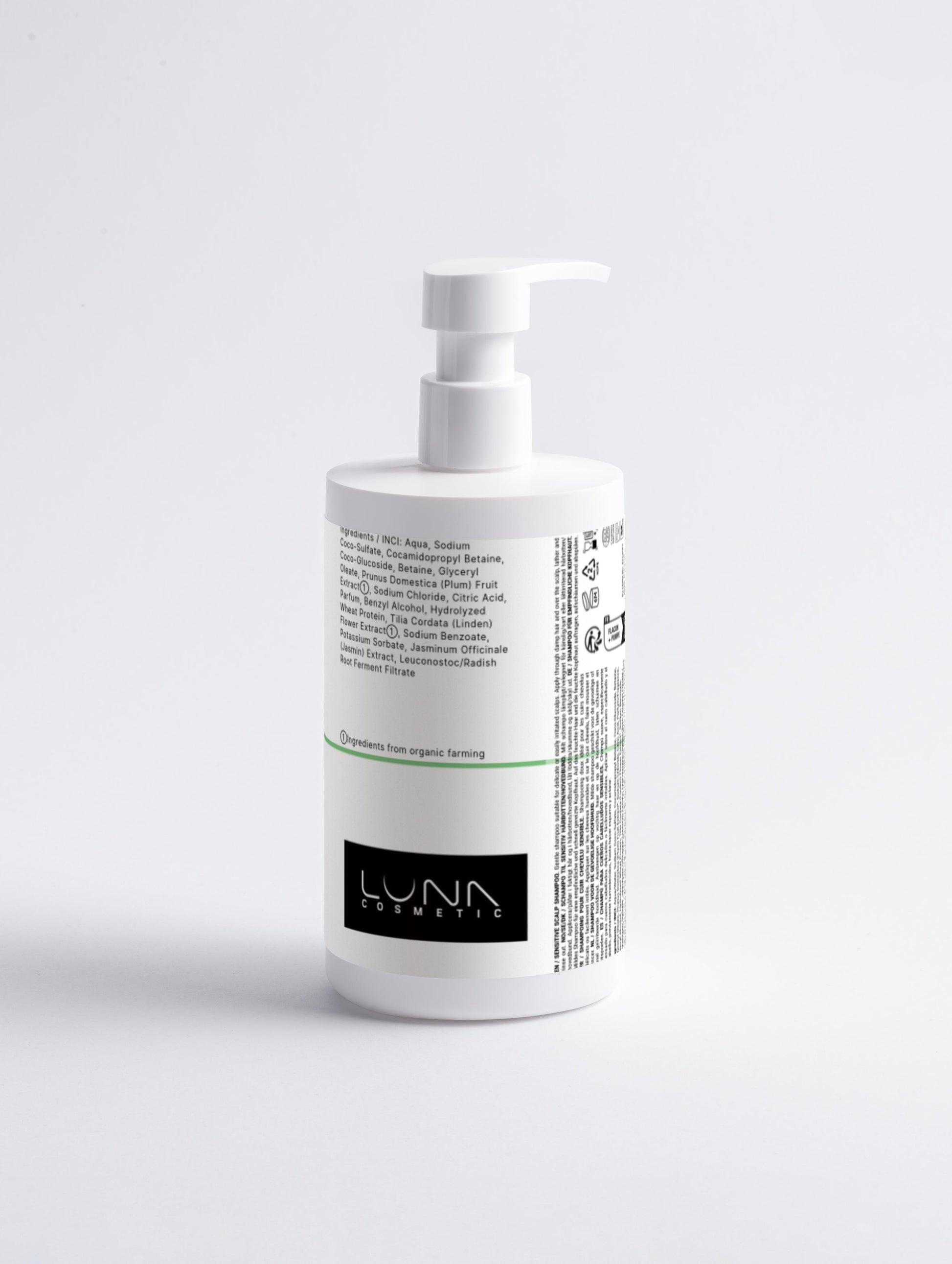 Aqua, Sodium Coco-Sulfate, Cocamidopropyl Betaine, Coco-Glucoside, Betaine, Glyceryl Oleate, Prunus Domestica (Plum) Fruit Extract➀, Sodium Chloride, Citric Acid, Parfum, Benzyl Alcohol, Hydrolyzed Wheat Protein, Tilia Cordata (Linden) Flower Extract➀, Sodium Benzoate, Potassium Sorbate, Jasminum Officinale (Jasmin) Extract, Leuconostoc/Radish Root Ferment Filtrate.