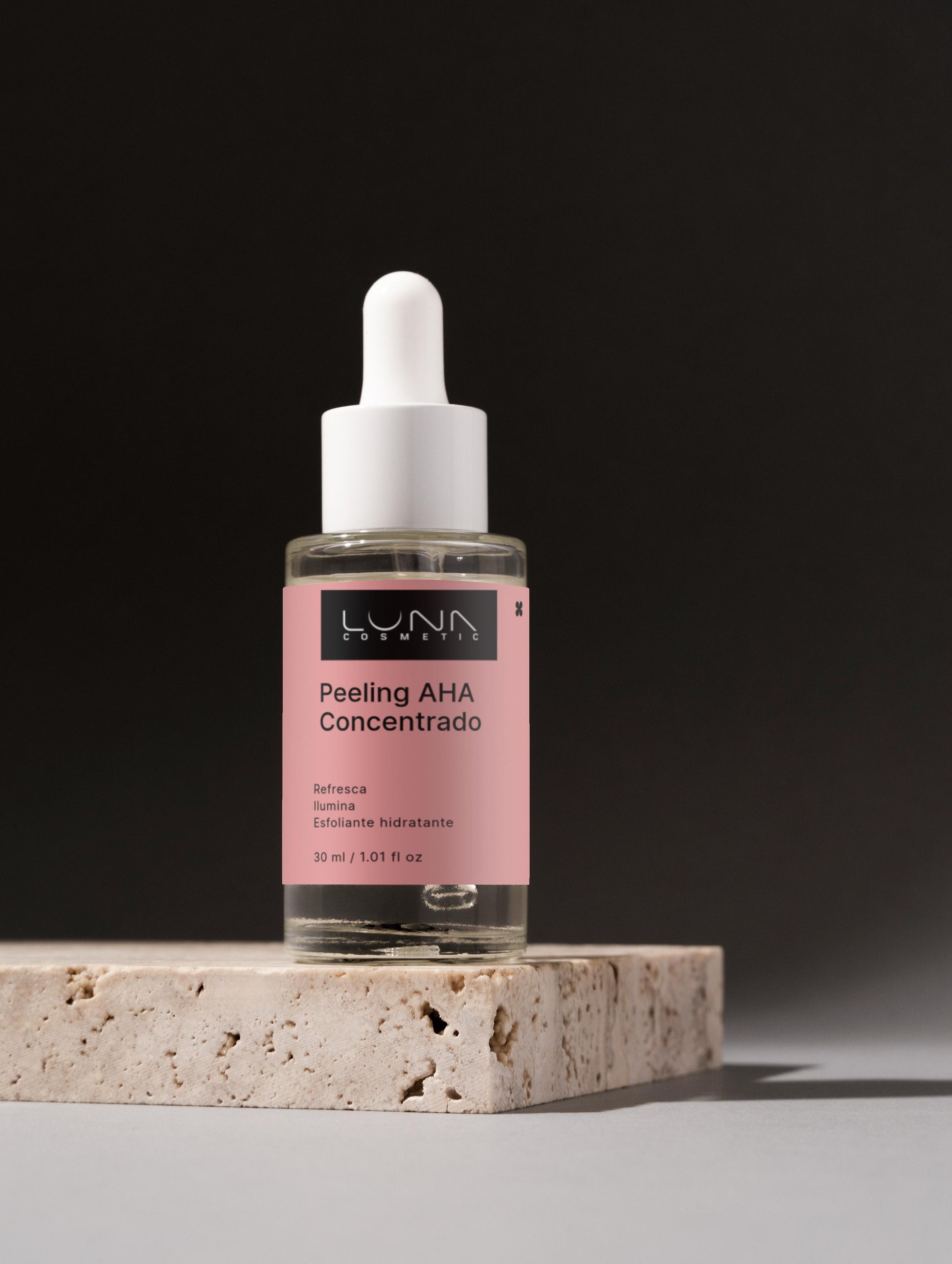 AHA Peeling Concentrate – Peeling suave com 10% de Ácido Lático, que remove células mortas e estimula a renovação celular, deixando a pele mais luminosa, uniforme e rejuvenescida.